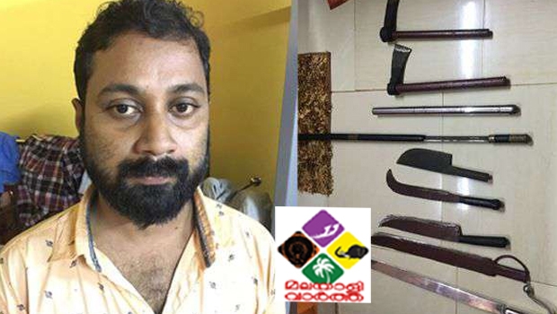പറക്കോട് ഗ്യാലക്സി ഹൗസില് ഷെഫീഖി(32)നെഅറസ്റ്റ് ചെയ്തു. അടൂരില് ഗ്യാലക്സി എന്ന പേരില് മൊബൈല് ഷോപ്പ് നടത്തുകയാണ് ഇയാള്. മൂന്നുവാള്, ഒരു വടിവാള്, രണ്ടു കത്തി, ഒരു ഇരുമ്ബ് ദണ്ഡ്, രണ്ട് മഴു എന്നിവയാണ് പൊലീസ് പിടികൂടിയത്.