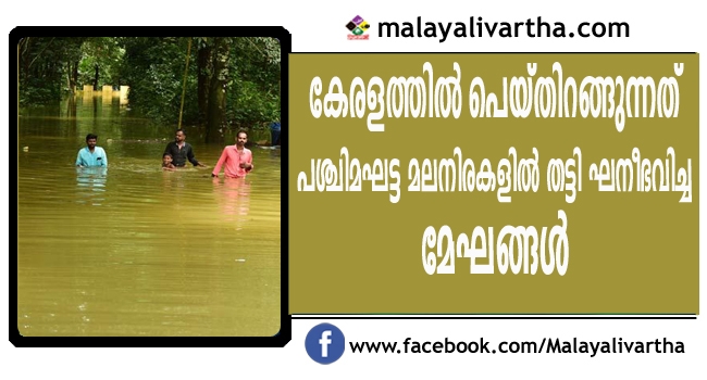 മധ്യപ്രദേശിനു മീതെയുള്ള ന്യൂനമര്ദ ഫലമായി ഉത്തരേന്ത്യ മുഴുവന് കനത്ത മഴ ലഭിച്ചുകൊണ്ടിരിക്കയാണ്. ഇതിലേക്ക് ആകര്ഷിക്കപ്പെടുന്ന മേഘങ്ങള് തെക്കു നിന്നു വടക്കോട്ടു പോകുന്ന വഴി കേരളത്തിനു മീതേ പെയ്തിറങ്ങുന്നു. പശ്ചിമഘട്ട മലനിരകളില് തട്ടി ഘനീഭവിച്ചാണ് മേഘങ്ങള് പെയ്തിറങ്ങുന്നത്.
