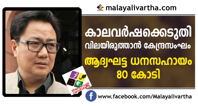 കാലവര്ഷക്കെടുതിയില് പെട്ട് ദുരിതം അനുഭവിക്കുന്നവര്ക്ക് മാനദണ്ഡം അനുസരിച്ചുള്ള നഷ്ടപരിഹാരം നല്കുമെന്ന് കേന്ദ്ര ആഭ്യന്തര സഹമന്ത്രി കിരണ് റിജിജു... ആദ്യഘട്ട ധനസഹായം 80 കോടി രൂപ അനുവദിച്ചു
