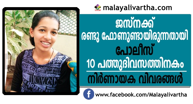 ജസ്ന രണ്ട് മൊബൈല് ഫോണ് ഉപയോഗിച്ചിരുന്നു; 10 ദിവസത്തിനകം നിര്ണായക വിവരങ്ങള് പുറത്തുവരുമെന്ന് അന്വേഷണ സംഘം; രണ്ടാമത്തെ ഫോണിലെ കോള് രേഖകള് കണ്ടെത്താനുള്ള ശ്രമം ഊര്ജിതം