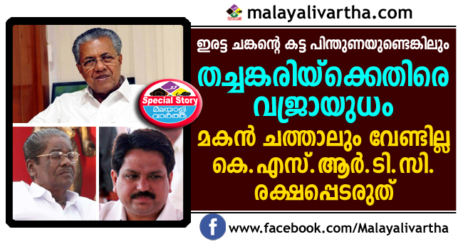 കെ.എസ്.ആര്.ടി.സിയെ മുടിപ്പിക്കുന്ന ജീവനക്കാരെ ജോലിക്ക് വിട്ടതോടെ സി.എം.ഡി. ടോമിന് തച്ചങ്കരിക്കെതിരേ കൈയും മെയ്യും മറന്ന് യൂണിയനുകളുടെ സമരകാഹളം. തച്ചങ്കരിയ്ക്കെതിരെ വജ്രായുധം പ്രയോഗിച്ച് ഓഗസ്റ്റ് ഏഴിന് സംയുക്ത പണിമുടക്ക് നടക്കും.
