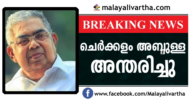 മുന് മന്ത്രി ചെര്ക്കളം അബ്ദുല്ല അന്തരിച്ചു...ലീഗിന്റെ തലമുതിര്ന്ന നേതാവ്; നാല് തവണ കാസര്കോഡ് മണ്ഡലത്തെ പ്രതിനിധീകരിച്ചു; മംഗലാപുരത്തെ ആശുപത്രിയില് ചികിത്സയിലായിരുന്നു