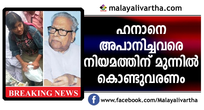 ഹനാന് നേരെ സംഘടിതമായി നവമാധ്യമങ്ങളിലൂടെ അപവാദപ്രചരണം നടത്തിയവരെ നിയമത്തിന് മുന്നില് കൊണ്ടുവരണമെന്ന് വി.എസ്