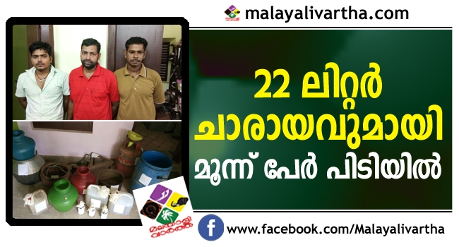 തിരുവനന്തപുരത്ത് 22 ലിറ്റര് ചാരായവുമായി മൂന്ന് പേര് പിടിയില്