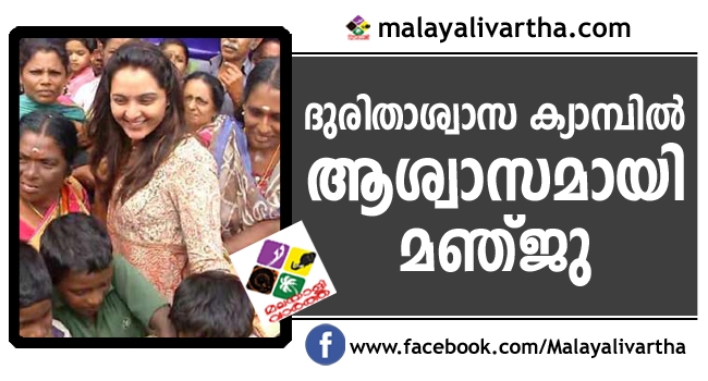 ദുരിതാശ്വാസ ക്യാമ്പിൽ ആശ്വാസമായി മഞ്ജു ; കുട്ടനാടുകാർക്ക് വസ്ത്രങ്ങളും നിത്യോപയോഗ സാധനങ്ങളും നൽകി