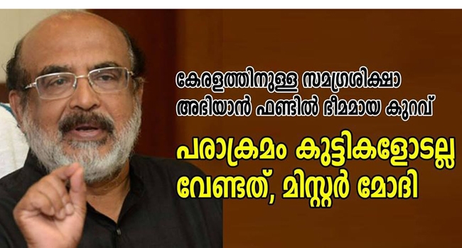 പൊതുവിദ്യാഭ്യാസ രംഗത്ത് കേരളം കൈവരിക്കുന്ന ഇന്ദ്രജാലവിസ്മയങ്ങള് ദേശീയ ശ്രദ്ധയാകര്ഷിക്കുന്ന സമയത്തു തന്നെയാണ് കേന്ദ്രത്തിന്റെ ഈ ഇരുട്ടടി. കേരളത്തിന്റെ രാഷ്ട്രീയപ്രതിബദ്ധതയോടുള്ള ബിജെപിയുടെ പകപോക്കല് സമീപനത്തിന് ഇപ്പോള് കുഞ്ഞുങ്ങളും ഇരയാവുകയാണ്. ഒരിക്കല്ക്കൂടി നരേന്ദ്രമോദിയോടു പറയട്ടെ, പരാക്രമം കുഞ്ഞുങ്ങളോടല്ല സര് വേണ്ടൂ..