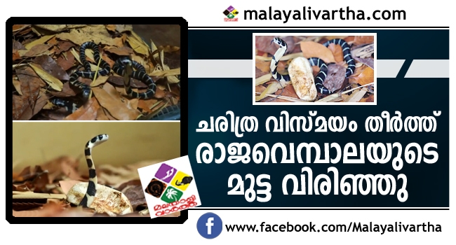 ചരിത്ര വിസ്മയം തീർത്ത് രാജവെമ്പാലയുടെ മുട്ടവിരിഞ്ഞു ; ഇന്ത്യയില് കൃത്രിമ ആവാസ വ്യവസ്ഥ ഒരുക്കി രാജവെമ്പാല മുട്ടകള് വിരിയിക്കുന്നത് ഇത് രണ്ടാം തവണ