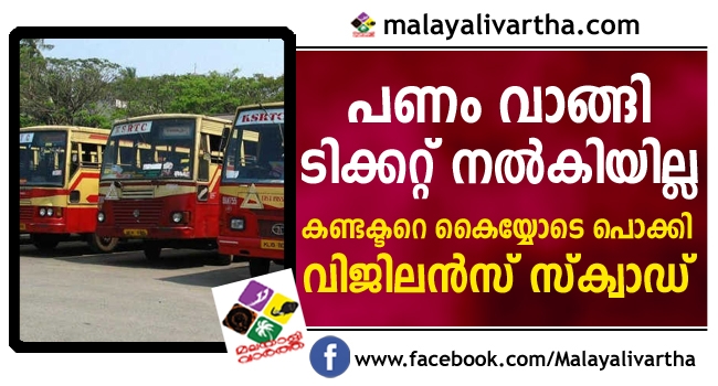 യാത്രക്കാരില് നിന്നും കണ്ടക്ടര് പണം വാങ്ങിയശേഷം ടിക്കറ്റ് നല്കിയില്ല, കൈയ്യോടെ പൊക്കി വിജിലന്സ് സ്ക്വാഡ്