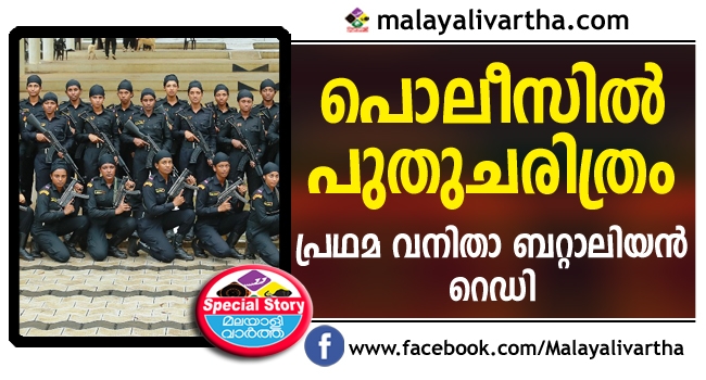 കേരള പൊലീസിന്റെ ചരിത്രത്തില് ആദ്യമായി രൂപീകരിച്ച വനിതാ പൊലീസ് ബറ്റാലിയന് യാഥാര്ഥ്യത്തിലേക്ക്. പ്രഥമ വനിതാ ബറ്റാലിയന് ബാച്ചിന്റെ പാസിങ് ഔട്ട് പരേഡ് നാളെ രാവിലെ 7.30 ന് കേരള പൊലീസ് അക്കാദമി പരേഡ് ഗ്രൗണ്ടില് നടക്കും. മുഖ്യമന്ത്രി പിണറായി വിജയന് അഭിവാദ്യം സ്വീകരിക്കും. പരേഡിന് ശേഷം ആദ്യ വനിതാ കമാന്ഡോകളുടെ ആയുധങ്ങള് ഉപയോഗിച്ചുള്ള ഡെമോണ്സ്ട്രേഷനും നടക്കും. ചടങ്ങില് സംസ്ഥാന പൊലീസ് മേധാവി ലോക്നാഥ് ബെഹറ, കേരള പോലീസ് അക്കാദമി ഡയറക്ടര് കൂടിയായ എഡിജിപി ഡോ. ബി. സന്ധ്യ മറ്റ് ഉയര്ന്ന പോലീസ് ഉദ്യോഗസ്ഥര് തുടങ്ങിയവര് പങ്കെടുക്കും.
