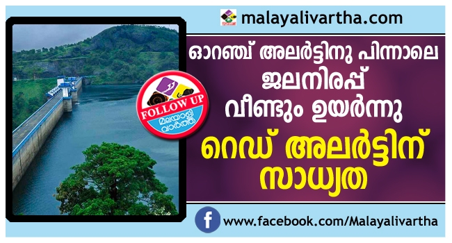 ഓറഞ്ച് അലര്ട്ട് പ്രഖ്യാപിച്ചതിനു പിന്നാലെ ഇടുക്കി ഡാമിലെ ജലനിരപ്പ് വീണ്ടും ഉയര്ന്നു, ജലനിരപ്പ് 2399 അടി ആകുമ്പോള് ക്രമപ്രകാരം മൂന്നാമത്തെ മുന്നറിയിപ്പ് നല്കേണ്ടതെങ്കിലും അടിയന്തര സാഹചര്യമുണ്ടായാല് 2397 അടിക്കോ അതിനും മുമ്പോ റെഡ് അലര്ട്ട് പ്രഖ്യാപിച്ച് ഷട്ടര് തുറക്കാനും സാധ്യതയേറുന്നു