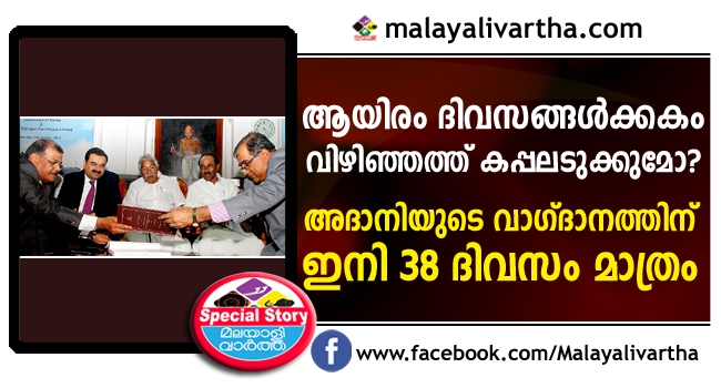 ആയിരം ദിവസങ്ങള്ക്കകം വിഴിഞ്ഞത്ത് കപ്പലടുപ്പിക്കും എന്ന ഗൗതം അദാനിയുടെ വാഗ്ദാനം പാലിക്കാന് ഇനി 38 ദിവസങ്ങള് മാത്രം