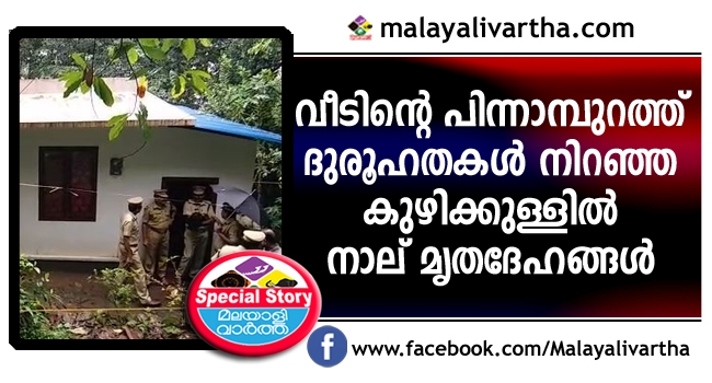 ആഭിചാരകർമ്മങ്ങൾക്ക് കളമൊരുക്കിയ വീട്ടിൽ മന്ത്രവാദിയായ ഗൃഹനാഥനെയും ഭാര്യയെയും മക്കളെയും അരുംകൊലചെയ്ത് കൊന്നുകുഴിച്ചുമൂടി അജ്ഞാതൻ; ഇടുക്കി വണ്ണപ്പുറത്ത് കാണാതായ നാലംഗ കുടുംബത്തെ വീടിന് പിന്നിലെ കുഴിയില് കണ്ടതോടെ ഞെട്ടൽ മാറാതെ ബന്ധുക്കളും നാട്ടുകാരും