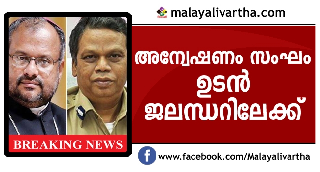 ജലന്ധര് ബിഷപ്പ് ഫ്രാങ്കോ മുളയ്ക്കലിനെതിരെ കന്യാസ്ത്രീ നല്കിയ ബലാത്സംഗ പരാതിയില് അന്വേഷണ സംഘം ഉടന് ജലന്ധറിലേക്ക്....