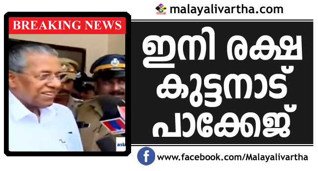 കുട്ടനാട് പാക്കേജ് നടപ്പിലാക്കാന് മുഖ്യമന്ത്രിയുടെ നേതൃത്വത്തിലുള്ള പ്രത്യേക അവലോകനയോഗം തീരുമാനിച്ചു. അതേസമയം മുഖ്യമന്ത്രി മാധ്യമ പ്രവര്ത്തകരോട് സംസാരിക്കവേ മാധ്യമ പ്രവര്ത്തകര് തിരക്ക് കൂട്ടി. ഒന്നും പറയാതെ മുഖ്യമന്ത്രി പോയതോടെ അവലോകന യോഗത്തില് എടുത്ത തീരുമാനങ്ങള് മന്ത്രിമാരായ ജി. സുധാകരനും കെ.കെ. ശൈലജ ടീച്ചറും വിശദീകരിച്ചു.