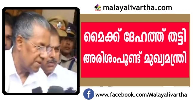 മൈക്ക് ദേഹത്ത് തട്ടിയതിന് നീരസം പ്രകടിപ്പിച്ച് മുഖ്യമന്ത്രി; അരിശംപൂണ്ട് മുഖ്യമന്ത്രി മാധ്യമപ്രവര്ത്തകരെ തട്ടിമാറ്റി കാറില്ക്കയറി പോയി