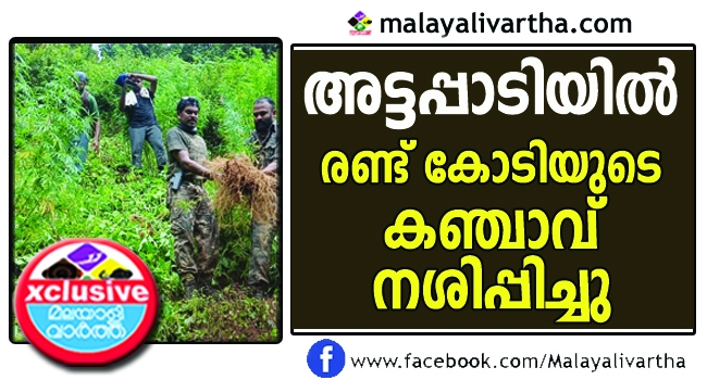 അട്ടപ്പാടിയില് വന് കഞ്ചാവ് വേട്ട, വിപണിയില് രണ്ട് കോടിയോളം വിലവരുന്ന 1200 കഞ്ചാവ് ചെടികള് പൊലീസ് പിടിച്ചെടുത്ത് നശിപ്പിച്ചു