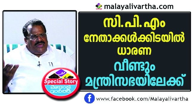 ഇ.പി. ജയരാജനെ വീണ്ടും മന്ത്രിയാക്കാൻ തീരുമാനിച്ചത് കണ്ണൂർ ജില്ലയിലെ ജാതി-സമവായങ്ങൾ നിലനിർത്താൻ. എന്നാൽ അദ്ദേഹത്തിന് വ്യവസായ വകുപ്പ് നൽകാൻ സാധ്യത കുറവാണ്. മുഖ്യമന്ത്രി അമേരിക്കയിൽ ചികിത്സക്ക് പോകുന്നതിന് മുമ്പ് ജയരാജൻ സത്യപ്രതിജ്ഞ ചെയ്യാൻ സാധ്യതയുണ്ട്.