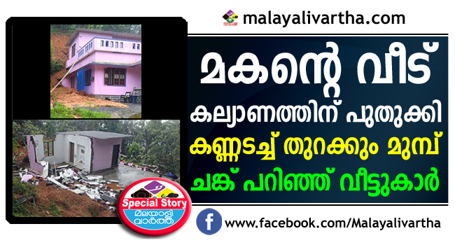 ചിങ്ങത്തില് മകന്റെ വിവാഹത്തിനു പന്തലൊരുക്കാനിരുന്ന വീട് കണ്മുന്നില് തകര്ന്നുവീഴുന്ന കാഴ്ച അമ്മിണിയുടെ മാത്രമല്ല, നാട്ടുകാരുടെയും കണ്ണുകള് ഈറനണിയിച്ചു. ഒന്നരവര്ഷം മുന്പാണ് കണ്ണൂര് എടപ്പുഴ റോഡരികില് ഒറ്റപ്പനാല് മോഹനന് ഇരുനില വീട് പൂര്ത്തിയാക്കിയത്. തൊട്ടടുത്തുള്ള അനുജന് രവീന്ദ്രന്റെ വീടും നോക്കി നില്ക്കെ തകര്ന്നുവീണു. 26 സെന്റിലാണ് മോഹനന്റെയും രവീന്ദ്രന്റെയും വീടുകള് നിന്നിരുന്നത്.