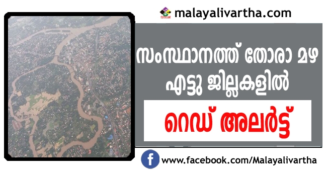 കേരളത്തില് വിവിധ ഭാഗങ്ങളില് മഴ തുടരുന്നു: എട്ടു ജില്ലകളില് റെഡ് അലര്ട്ട്; മധ്യകേരളത്തിലും വടക്കന് ജില്ലകളിലും അതിതീവ്രമായ മഴയ്ക്ക് സാധ്യത; യുദ്ധസമാന മുന്നൊരുക്കങ്ങളുമായി സംസ്ഥാന സര്ക്കാര്