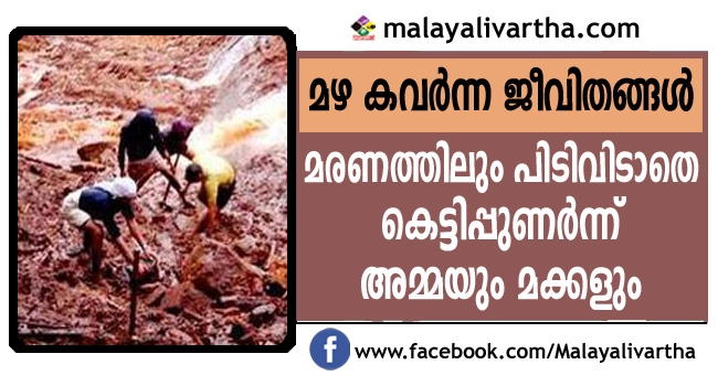 മരണത്തിലും അമ്മയും മക്കളും കെട്ടിപ്പുണര്ന്നു കിടക്കുന്ന കാഴ്ച കേരളക്കരയെ കണ്ണീരിലാഴ്ത്തിയതാണ്. നിലമ്പൂരിലായിരുന്നു ആ ഹൃദയഭേദകമായ കാഴ്ച. ഉരുള്പൊട്ടലിലും മണ്ണിടിച്ചിലിലും മരണപ്പെട്ട ഗീത, മക്കളായ നവനീത്, നിവേദ് എന്നിവരുടെ മൃതശരീരമാണ് പരസ്പരം കെട്ടിപ്പുണര്ന്ന നിലയില് കണ്ടെത്തിയത്. മുട്ടോളം ചളി നിറഞ്ഞ മണ്ണില് പുതഞ്ഞ് കിടന്നിരുന്ന മൃതശരീരങ്ങള് രാവിലെ 8.30 ഓടെയാണ് നാട്ടുകാര് കണ്ടെടുത്തത്.