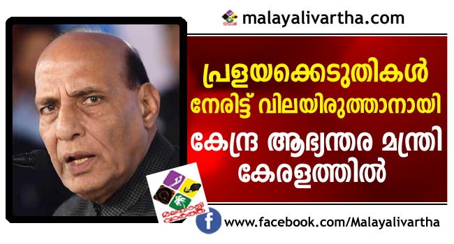 സംസ്ഥാനത്തെ പ്രളയക്കെടുതികള് നേരിട്ട് വിലയിരുത്താനായി കേന്ദ്ര ആഭ്യന്തര മന്ത്രി കേരളത്തില്
