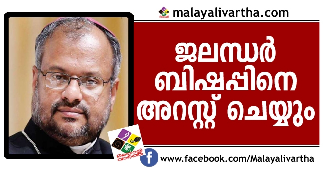 ജലന്തർ ബിഷപ്പിനെ അറസ്റ്റ് ചെയ്യും ; കന്യാസ്ത്രീയെ ലൈംഗികമായി പീഡിപ്പിച്ചെന്ന ആരോപണത്തിൽ ജലന്ധര് രൂപതാ ബിഷപ്പ് ഫ്രാങ്കോ മുളയ്ക്കലിനെ അറസ്റ്റ് ചെയ്യുമെന്ന് സര്ക്കാര് കോടതിയെ അറിയിച്ചു