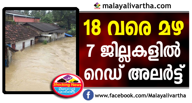 സംസ്ഥാനത്ത് ഈ മാസം 18 വരെ ശക്തമായ മഴക്ക് സാധ്യതയുണ്ടെന്ന് കാലാവസ്ഥാ നിരിക്ഷണകേന്ദ്രം; കാറ്റ് മണിക്കൂറില് 60 കിലോമീറ്റര് വരെ വേഗത്തില് വീശാന് സാധ്യത; ജനങ്ങള് ജാഗ്രത പാലിക്കണമെന്ന് മുന്നറിയിപ്പ്; ഏഴ് ജില്ലകളില് റെഡ് അലര്ട്ടും മൂന്ന് ജില്ലകളില് ഓറഞ്ച് അലര്ട്ടും