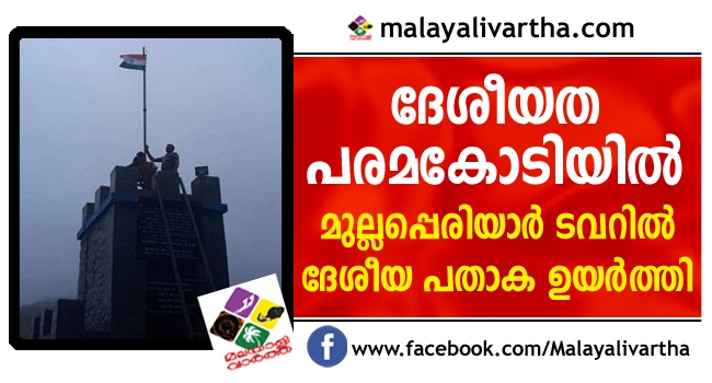 മുല്ലപ്പെരിയാര് അണക്കെട്ടില് ജലനിരപ്പ് ഉയരുന്നെന്ന ഭീതി നിലനില്ക്കവേ അണക്കെട്ടിന്റെ ടവറില് ത്രിവര്ണ പതാക ഉയര്ന്നു