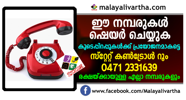 സ്റ്റേറ്റ് കണ്ട്രോള് റൂം നമ്പര്: 0471 2331639