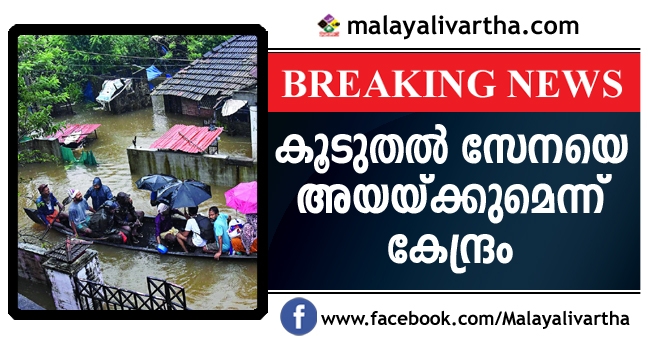 കേരളത്തിലേയ്ക്ക് കൂടുതല് എന്.ഡി.ആര്.എഫ്. ടീമുകളെ ഉടന് എത്തിക്കുമെന്ന് കേന്ദ്ര ആഭ്യന്തര മന്ത്രി രാജ് നാഥ്സിംഗ് അറിയിച്ചു. പ്രളയകെടുതികള് സംബന്ധിച്ച് കേരള മുഖ്യമന്ത്രിയുമായി നിരന്തരം ബന്ധപ്പെട്ടുവരികയാണ്. കേന്ദ്രം സാധ്യമായ എല്ലാസഹായവും ചെയ്യുമെന്നും അദ്ദേഹം ട്വിറ്ററില് പറഞ്ഞു. മുഖ്യമന്ത്രി പിണറായി വിജയന്റെഅഭ്യര്ത്ഥന പ്രകാരം പ്രളയത്തില് കുടുങ്ങിയവരെ രക്ഷപ്പെടുത്താന് കൂടുതല് ബോട്ടുകളും, ലൈഫ്ജാക്കറ്റുകളും ലഭ്യമാക്കുമെന്ന് രാജ്യരക്ഷാ മന്ത്രി നിര്മ്മലാ സീതാരാമന് അറിയിച്ചു. വ്യോമസേനയുടെ കൂടുതല് ഹെലികോപ്റ്ററുകളും വിന്യസിക്കുമെന്ന് അവര് അറിയിച്ചു.