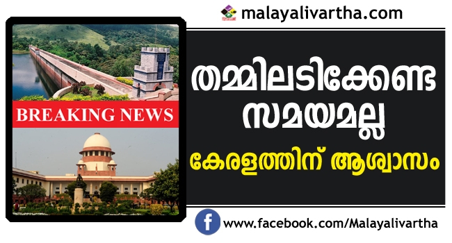 ഒടുവിൽ തർക്ക പരിഹാരം ; ഒഴുക്കിക്കളയുന്ന വെള്ളം കൊണ്ടുപോകാമെന്ന് തമിഴ്നാട് സമ്മതിച്ചു ; കേരളത്തിന് ആശ്വാസമായി മുല്ലപ്പെരിയാര് ജലനിരപ്പ് 139 അടിയാക്കി കുറയ്ക്കും ; തീരുമാനം ചീഫ് ജസ്റ്റിസ് ദീപക് മിശ്ര അധ്യക്ഷനായ സുപ്രീം കോടതി ബെഞ്ചിന്റെത്
