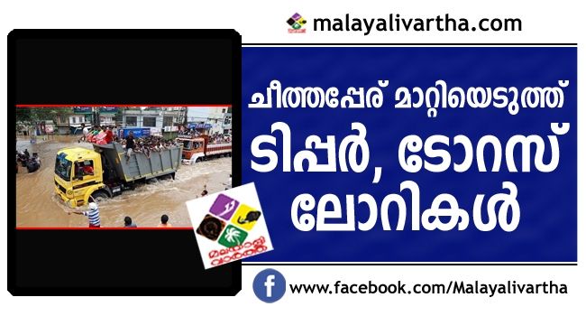 കാലങ്ങളായി 'ആളെക്കൊല്ലി' എന്ന ചീത്തപ്പേരിന് ഉടമയാണ് ടോറസ് ലോറികളും ടിപ്പര് ലോറികളും. ചെറുവാഹനങ്ങളുടെയും കാല്നടയാത്രികരുടെയുമൊക്കെ കണ്ണില് ജീവനെടുക്കുന്ന രാക്ഷസവാഹനത്തിന്റെ രൂപമാവും അവര്ക്ക്. എന്നാല് രൂക്ഷമായ ഈ പ്രളയ കാലത്ത് ആ ധാരണ ഈ വാഹനങ്ങള് തിരുത്തിയിരിക്കുന്നു. തങ്ങളുടെയുള്ളിലും മനസാക്ഷിയും കരുണയുമുള്ള ഒരു ഹൃദയമുണ്ടെന്ന് അവര് തെളിയിച്ചിരിക്കുന്നു.