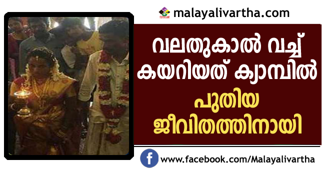 ക്യാമ്പിലുള്ളവരെ സാക്ഷിയാക്കി വധുവരന്മാര് ഗൃഹപ്രവേശനം നടത്തി