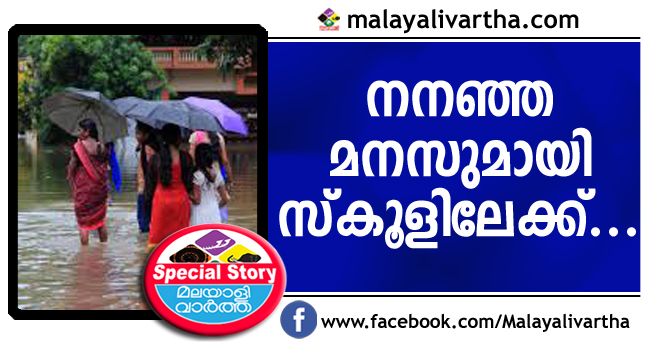 പ്രളയബാധിത മേഖലകളിലെ സ്കൂളുകളിലും ക്യാമ്പുകളായി പ്രവര്ത്തിച്ച സ്കൂളുകളിലും ശുചീകരണം ഏറെക്കുറെ പൂര്ത്തിയായിട്ടുണ്ട്. പാഠപുസ്തകങ്ങളും യൂണിഫോമും നഷ്ടപ്പെട്ട കുട്ടികള്ക്ക് ഇവ നാളെ മുതല് വിതരണം ചെയ്യുമെന്നാണ് അധികൃതരുടെ ഉറപ്പ്. കനത്ത മഴമൂലം ഏറെ അധ്യായന ദിവസങ്ങള് ഇത്തവണ നഷ്ടപ്പെട്ടിട്ടുണ്ട്.