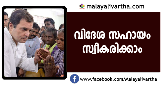 ഉപാധികളില്ലാതെ വിദേശസഹായം സ്വീകരിക്കുന്നതില് തെറ്റില്ലെന്ന് കോണ്ഗ്രസ് അധ്യക്ഷന് രാഹുല് ഗാന്ധി.കേന്ദ്ര സര്ക്കാരിനെതിരെ ശക്തമായ വിമര്ശനമാണ് രാഹുല്ഗാന്ധി ഉന്നയിച്ചത്. കേരളത്തിനായി പ്രഖ്യാപിച്ച പാക്കേജ് അപര്യാപ്തമെന്ന് രാഹുല് പറഞ്ഞു. പുനര്നിര്മ്മാണത്തിന് കേന്ദ്രം പുതിയ പാക്കേജ് പ്രഖ്യാപിക്കണം. കേരളത്തിലെ ദുരന്തത്തെ രാഷ്ട്രീയവല്ക്കരിക്കാനില്ലെന്നും രാഹുല് പറഞ്ഞു.