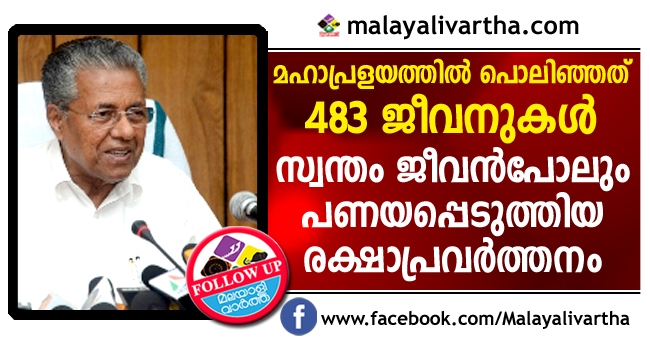സ്വന്തം ജീവന്പോലും പണയപ്പെടുത്തിക്കൊണ്ടുള്ള രക്ഷാപ്രവര്ത്തനമായിരുന്നു നാട് ദര്ശിച്ചത്. രക്ഷാപ്രവര്ത്തകര് ബോട്ട് മറിഞ്ഞും മറ്റും പോലും അപകടത്തില്പ്പെട്ടു. എന്നിട്ടും രക്ഷാപ്രവര്ത്തനത്തില് നിന്നും പിന്മാറാതെയും പതറാതെയും സ്വന്തം സഹോദരന്മാരെ എന്നപോലെ രക്ഷപ്പെടുത്താന് സാഹസികമായി നടത്തിയ പരിശ്രമങ്ങള് നടത്തിയ എല്ലാവര്ക്കും നമുക്ക് ബിഗ് സല്യൂട്ട് നല്കാം. ഇന്നേവരെ കണ്ടിട്ടില്ലാത്ത രക്ഷാപ്രവർത്തനമാണ് കേരളത്തിൽ നടന്നത്. ത്യാഗസന്നദ്ധതയുടേയും ആത്മസമർപ്പണത്തിന്റേയും പ്രതീകമായിരുന്നു രക്ഷാപ്രവർത്തനം. രക്ഷാപ്രവർത്തനത്തിൽ സജീവമായവരുടെ സേവനങ്ങളെ സർക്കാർ മാനിക്കുന്നുവെന്നും മുഖ്യമന്ത്രി പറഞ്ഞു.