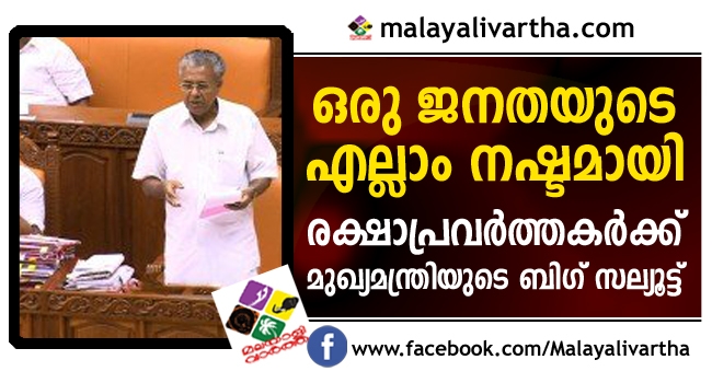 പ്രത്യേക നിയമസഭാ സമ്മേളനം; ഒരു ജനതയുടെ എല്ലാം നഷ്ട്ടമായി രക്ഷാപ്രവര്ത്തനത്തില് പങ്കാളികളായവര്ക്ക് ബിഗ് സല്യൂട്ട് നല്കി മുഖ്യമന്ത്രി; കേരളത്തിന് താങ്ങാവുന്നതിലുമധികം മഴപെയ്തു; മുഖ്യമന്ത്രിയുടെ പ്രസംഗത്തിലെ പ്രസക്ത ഭാഗങ്ങള് ഇങ്ങനെ