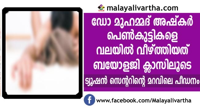 ഡോ മുഹമ്മദ് അഷ്കര് പെണ്കുട്ടികളെ വലയില് വീഴ്ത്തിയത് ബയോളജി ക്ലാസിലൂടെയായിരുന്നു. ലൈംഗികബന്ധം തെറ്റല്ലെന്ന് പറഞ്ഞാണ് പെണ്കുട്ടികളെ വലയില് വീഴ്ത്തിയിരുന്നത്. കാഞ്ഞങ്ങാട് കേന്ദ്രമാക്കി നടത്തിയിരുന്ന ചാപ്റ്റര് ട്യൂഷന് സെന്ററിന്റെ മറവിലാണ് ഇയാള് പെണ്കുട്ടികളെ വലയില് വീഴ്ത്തി പീഡിപ്പിച്ചിരുന്നത്.