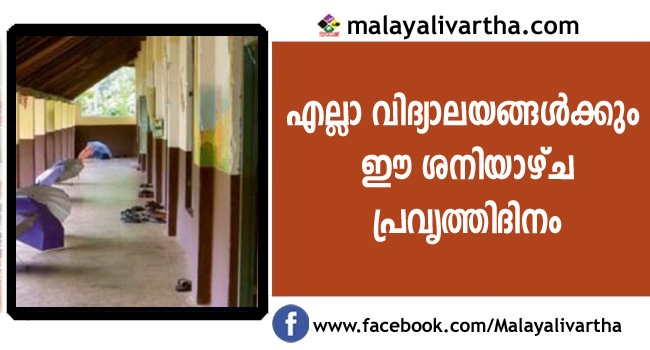 സംസ്ഥാനത്തുണ്ടായ പ്രളയ ദുരന്തത്തെ തുടര്ന്ന് നഷ്ടപ്പെട്ട പ്രവൃത്തി ദിനങ്ങള് വീണ്ടെടുക്കുന്നതിന്റെ ഭാഗമായി; സംസ്ഥാനത്തെ എല്ലാ വിദ്യാലയങ്ങള്ക്ക് നാളെ(ശനിയാഴ്ച) പ്രവൃത്തിദിനം