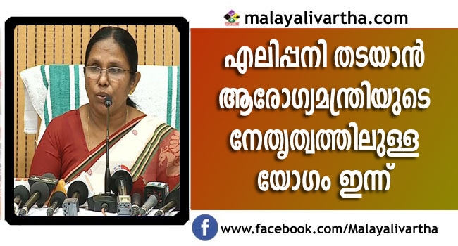 ജില്ലയില് എലിപ്പനി പടരുന്നു പിടിക്കുന്ന പശ്ചാത്തലത്തില് ആരോഗ്യമന്ത്രി കെ.കെ. ശൈലജ വിളിച്ച യോഗം ഇന്ന് വൈകീട്ട് മൂന്നു മണിക്ക് കലക്ടറേറ്റില്