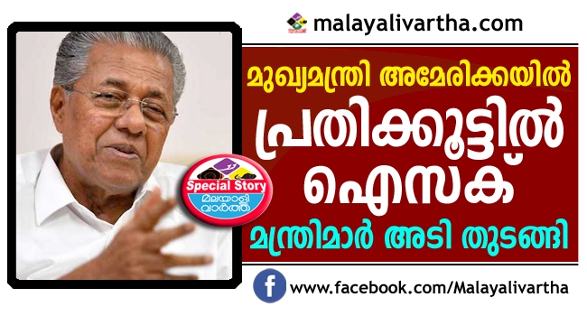 മുഖ്യമന്ത്രി അമേരിക്കയില് പോയതോടെ മന്ത്രിമാര് അടി തുടങ്ങി; ഐസക് പ്രതിക്കൂട്ടില്