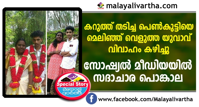 തില്ലങ്കേരി കാര്ക്കോട് സ്വദേശിയായ 21 വയസുള്ള യുവാവ് ആലപ്പുഴ സ്വദേശിനിയായ 18 വയസുകാരിയെ പ്രണയിച്ച് വിവാഹം കഴിച്ചതിന്റെ ഫോട്ടോസ് സോഷ്യല് മീഡിയയില് വൈറലായതോടെ സദാചാര പൊങ്കാലക്കാര് ആക്ഷേപവുമായി രംഗത്തെത്തി