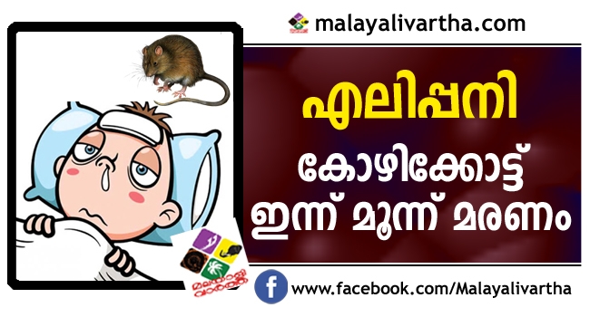 കോഴിക്കോട്ട് ഇന്ന് മൂന്ന് പേര് എലിപ്പനി ബാധിച്ച് മരിച്ചു, 84 പേര്ക്ക് രോഗം സ്ഥിരീകരിച്ചു 195 പേര്ക്ക് രോഗമുണ്ടെന്ന് സംശയിക്കുന്നു