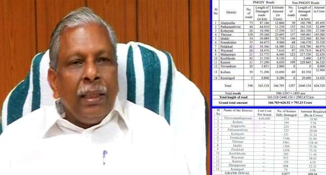 ഇൗ സാഹചര്യത്തിലാണ് വകുപ്പിന് കീഴിലെ റോഡുകളുടേയും വീടുകളുടേയും പുനര്നിര്മ്മാണത്തിന് 1300 കോടി രൂപ ആവശ്യപ്പെട്ട് മന്ത്രി എ.സി മൊയ്തീന് കേന്ദ്ര ഗ്രാമവികസന വകുപ്പ് മന്ത്രി നരേന്ദ്രസിംഗ് തൊമാറിന് കത്തയച്ചത്.