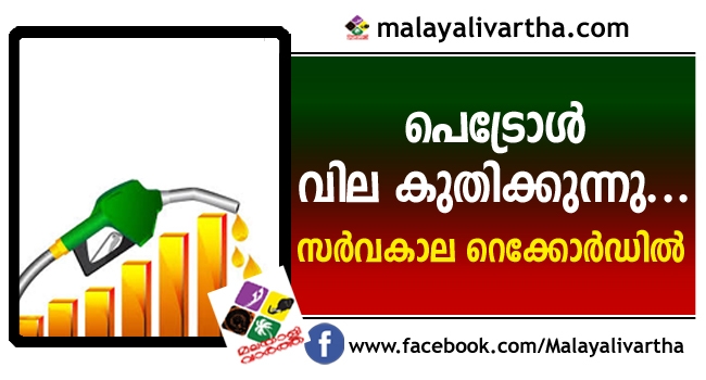 പെട്രോൾ, ഡീസൽ വില വീണ്ടും വർധിച്ചു. ഇന്ന് 20 പൈസ കൂടിയതോടെയാണു പെട്രോൾ വില റെക്കോർഡിലെത്തിയത്. ഒരു ലീറ്റർ പെട്രോളിനു കൊച്ചി നഗരത്തിൽ 81 രൂപ 55 പൈസയാണ് ഇന്നത്തെ വില. മേയ് 29–നായിരുന്നു ഇതിനു മുൻപ് ഏറ്റവും ഉയർന്ന വില രേഖപ്പെടുത്തിയത്–81.41 രൂപ. ഡീസൽ വിലയിൽ 23 പൈസയാണ് ഇന്നു കൂടിയത്. തിരുവന്തപുരത്ത് പെട്രോളിന് 20 പൈസ വർധിച്ച് 82.61 രൂപയായി. ഡീസലിന് 76.38 രൂപയുമായി.