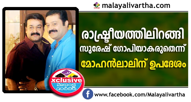 മോഹന്ലാല് ബി ജെ പി സ്ഥാനാര്ത്ഥിയാവും എന്ന വാര്ത്തകള്ക്ക് ഏതാണ്ട് സ്ഥിതീകരണം ലഭിച്ച സാഹചര്യത്തിലാണ് ഇത്തരത്തിലൊരു ഉപദേശം അദ്ദേഹത്തിന് ലഭിച്ചത്. മോഹന്ലാലിന് ഇത് വിവാദങ്ങളുടെ കാലമാണ്. അമ്മയിലെ വിവാദങ്ങളില് അദ്ദേഹം അകപ്പെട്ടത് തികച്ചും അപ്രതീക്ഷിതമായാണ്. എറണാകുളം പ്രസ് ക്ലബില് അദ്ദേഹം പത്രസമ്മേളനത്തിനെത്തിയത് തനിക്ക് ദിലീപുമായി യാതൊരു ബന്ധവുമില്ലെന്ന് വ്യക്തമാക്കാനാണ്. എന്നാല് സംസാരത്തിന്റെ ഗതി മാറി പോയി. സംസാരിച്ച് സംസാരിച്ച് മോഹന്ലാല് അറിയാതെ ദിലീപിന്റെ ആളായി മാറുകയായിരുന്നു.
