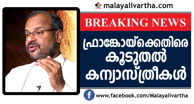 ബിഷപ്പ് ഫ്രാങ്കോയ്ക്കെതിരെ കൂടുതല് കന്യാസ്ത്രീകള് പരാതിയുമായി രംഗത്ത്; ബിഷപ്പിന്റെ മോശം പെരുമാറ്റം കാരണം തിരുവസ്ത്രം ഉപേക്ഷിച്ച രണ്ടു കന്യാസ്ത്രീമാര് പരാതിയുമായി രംഗത്ത്; ബിഷപ്പിനെ അറസ്റ്റ് ചെയ്യാത്തതിന് ഹൈക്കോടതിയെ സമീപിക്കാന് ബന്ധുക്കള്