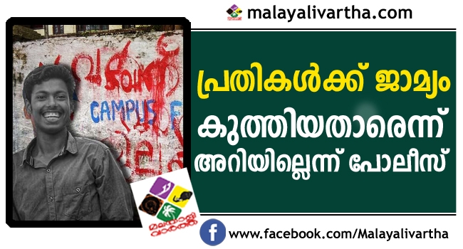 കൊലയാളിയെ കാണാമറയത്ത് നിര്ത്തി പോലീസിന്റെ ഒളിച്ചുകളി: അഭിമന്യു വധത്തില് നാലു പ്രതികള്ക്ക് ഉപാധികളോടെ ജാമ്യം; കുത്തി വീഴ്ത്തിയത് ആരെന്ന് അറിയാതെ പൊലീസ്