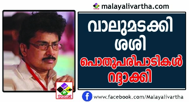 ലൈംഗികാരോപണത്തിന് വിധേയനായ ഷൊര്ണൂര് എംഎല്എ പി.കെ. ശശിയുടെ പൊതുപരിപാടികള് റദ്ദാക്കി. ഷൊര്ണൂര് മണ്ഡലത്തിലെ ഉദ്ഘാടന പരിപാടികളാണ് റദ്ദാക്കിയിരിക്കുന്നത്. വിശദീകരണത്തിൽ അനാരോഗ്യം കാരണം പരിപാടികള് റദ്ദാക്കി എന്ന് പറയുന്നു.