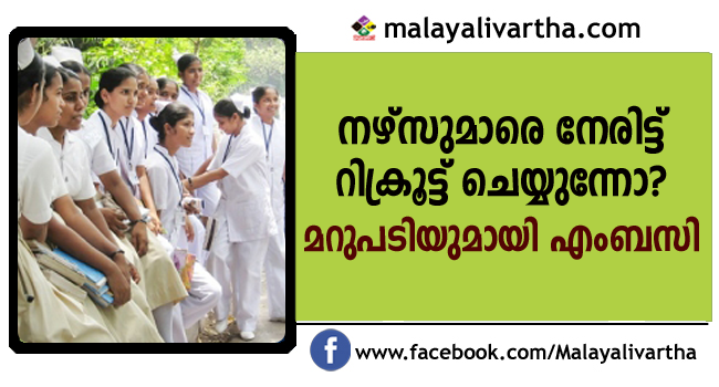 കേരളത്തിലെ നോര്ക്ക, ഒഡെപെക് എന്നിവ ഉള്പ്പെടെ വിവിധ സംസ്ഥാന സര്ക്കാരുകളുടെ നിയന്ത്രണത്തിലുള്ള ആറ് ഏജന്സികളിലൂടെ മാത്രമാണ് വിദേശത്തേക്കുള്ള നഴ്സ് റിക്രൂട്ട്മെന്റ എന്നും ഇന്ത്യന് എംബസി വ്യക്തമാക്കി.